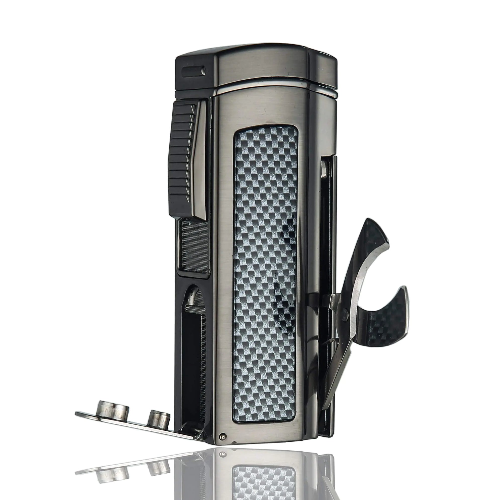 [High Quality 4 Jet Flame Table Torch Lighter with Flip Top Lid universal Refill Valve and Built-in Punch and Scissors Large Size Table Sturdy Metal Material Body. Adjustable Flame Height . Refillable Butane Fuel. Lighter is shipped Without gas due to Air Mail regulation. Open the cover of the lighter press the button and the piezo ignition and continuously works so that the lighter is ignited. When the thumb moves away from the ignition switch lighter stops work. Packed in a fancy gift box. It’s a perfect gift for any occasions like Wedding Father’s Day Birthday Anniversary Thanksgiving Christmas New Year Valentines Day etc. Our Butane Lighters have been well tested examined and package before sending off. Torch lighter is designed with three-layers safety protection profession experienced 20 process quality inspections. You can rest assured that your purchase at our store is guaranteed. Any problem please feel free to contact us first so that we can supply the best service for you.]